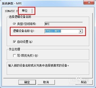 在彈出的“系統參數”對話框中選擇“單位”選項卡,選擇“邏輯設備名稱”下拉列表框中,可以選擇WinCC與PLC通信的硬件設備